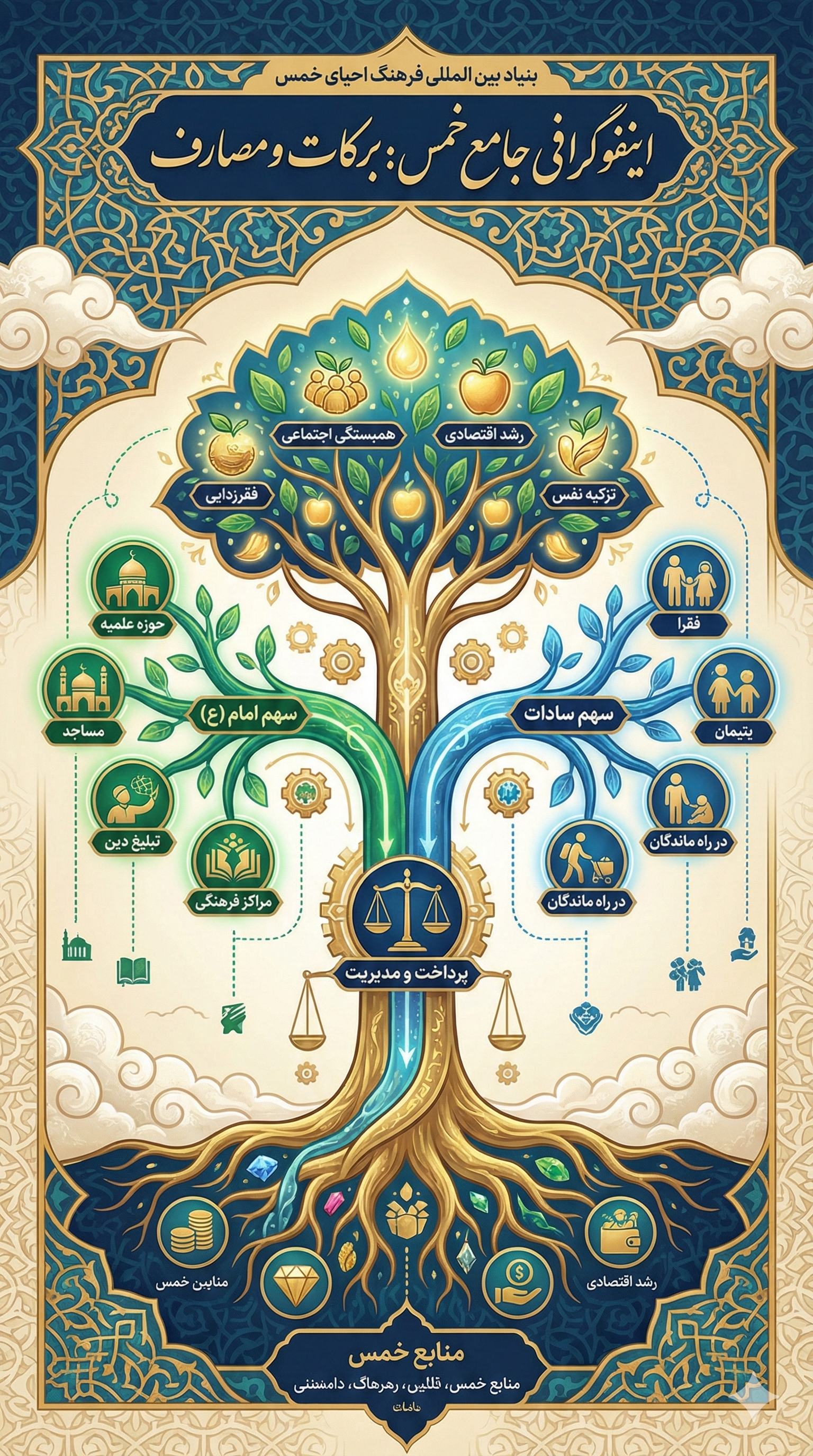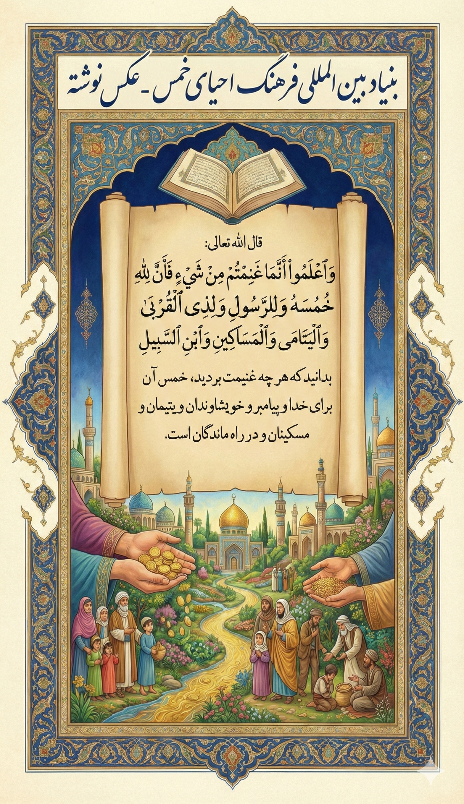 فریضه مالی خمس، از واجبات مهمی است که خداوند در آیه ۴۱ سوره انفال با صراحت آن را جزو تکالیف مؤمنان قرار داده است. این واجب الهی، جایگاه ویژه ای در نظام اقتصادی اسلام به ویژه در توزیع ثروت و عدالت اجتماعی دارد . رفع نیاز مالی فقرا و مدد رسانی یتیمان، واماندگان و مساکین از یک سو و در برداشتن ظرفیتی عظیم برای رشد معارف شیعی و یاری دین با هدف غایی حاکمیت اسلام از سویی دیگر ابعاد چنین ظرفیتی را آشکار می کند.